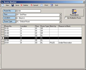- Maintain all room number available with Floor, Location & Room Type.